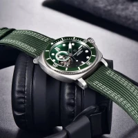 Представляємо годинник Pagani Design PD-1736 Silver-Green — стильний спортивний аксесуар, створений для чоловіків. Цей годинник має квадратний корпус із неіржавкої сталі сріблястого кольору та обладнаний сапфіровим склом, що забезпечує високу стійкість до подряпин. Водонепроникність до 200 метрів робить його ідеальним для занять водними видами спорту. Час і дата зображаються на стрільному циферблаті з індиксами та точками, а підсвіткою слугує люмінесцентне покриття. Механізм механічний з автопідзаводом, що забезпечує надійність і точність. Ремінець із нейлону зеленого кольору доповнює стильний вигляд годинника, а його розмір 43 х 43 мм робить його зручним для повсякденного носіння. Годинник постачається з гарантією на 12 місяців. Вага — 99 г, довжина ремінця — 22 см, ширина — 24 см. Вироблено в Китаї під брендом Pagani Design.